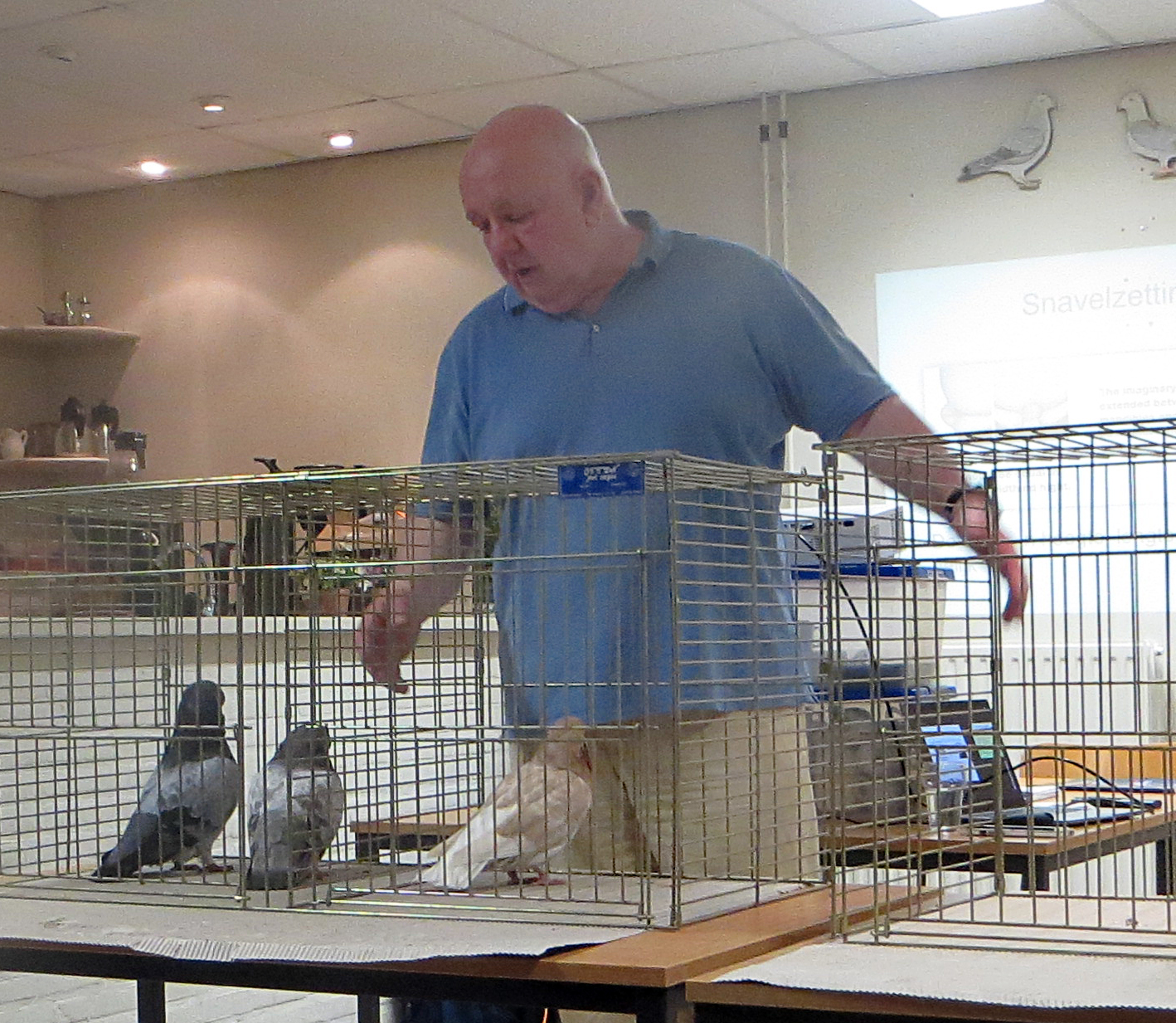 Maandag 8 mei kwam Albert van Feggelen langs voor een bespreking van de Engelse Langvoorhoofd Tuimelaar. Na een reisje van 2 uur was Albert toch blij met de opkomst, een achttiental leden waren aanwezig om het verhaal over Albert zijn favoriete ras aan te horen.